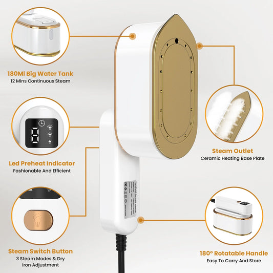 Handheld Travel Steamer for Clothes – 1300W Portable Garment Steamer, 180Ml Large Tank, Fast Heat in 10S, Wrinkle Remover for Home, Office & Travel